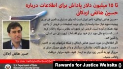 د امریکا د متحده ایالاتو د عدالت د پاره د انعام پروګرام د حسین هاتفي اردکاني په نامه د ایراني تاجر په هکله د معلوماتو دپاره تر ۱۵ میلیونو ډالرو پورې د جایزې اعلان کړی دی.